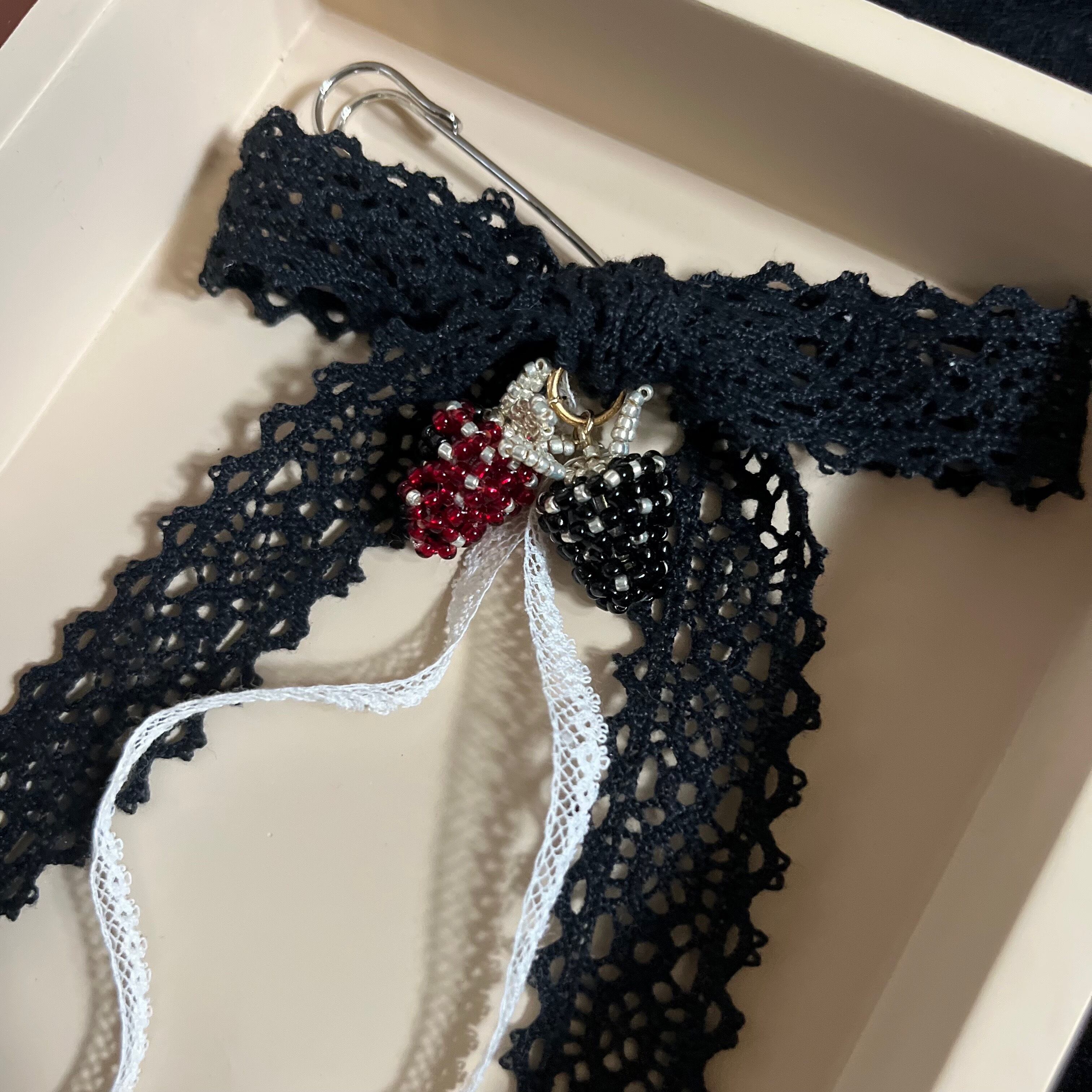 ribbon charm(black × red strawberry)